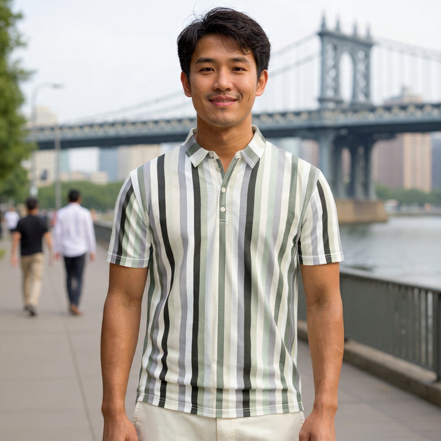 95% polyester, 5% spandex / Stretchy jersey material / Slim fit / White button placket